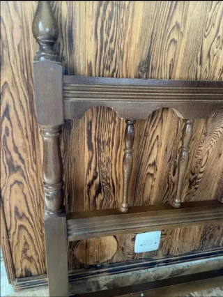 Conjunto de dos cabeceros de madera con un diseño tradicional castellano. Aportan un toque rústico y elegante a cualquier habitación. - Fabricados en madera. - Color marrón oscuro. Para camas de 80 cm. Medida aproximada : Ancho 97 cm, alto 64,50 cm y alto hasta el total de las esquinas 80 cm.