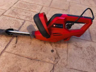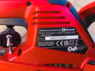 Cortasetos eléctrico Einhell GH-EH 4245. Comprado en febrero de 2025 usado dos veces. - Voltaje: 230 V - Frecuencia: 50 Hz - Potencia: 420 W - Velocidad sin carga: 1600 min⁻¹ - Longitud de corte: 450 mm - Cortes por minuto: 3200 - Número de lote/fabricación: 2024/10 P-24-2842 - Fabricante: ISC GmbH, Landau/Isar, Germany - Certificaciones: CE, UKCA, GS