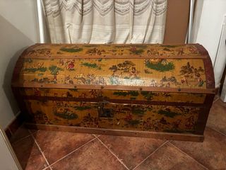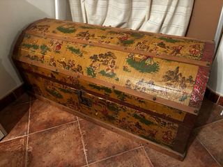 Baúl de madera estilo antiguo, como se aprecia en las fotos la base está algo estropeada aunque permite su uso.
