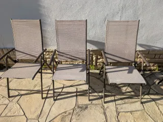 Conjunto de 6 sillas plegables perfectas para tu espacio exterior. Son muy cómodas y fáciles de guardar. - Estructura metálica. - Asiento y respaldo de tela. - Reclinables en 7 posiciones. - Plegables