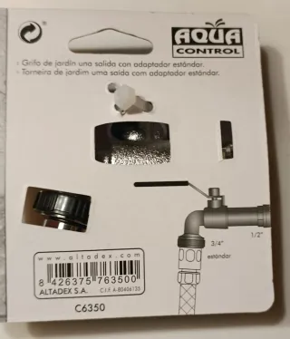 Grifo de jardín Aqua Control con salida y adaptador estándar. - Diseño en metal plateado y negro. - Incluye mango de palanca.