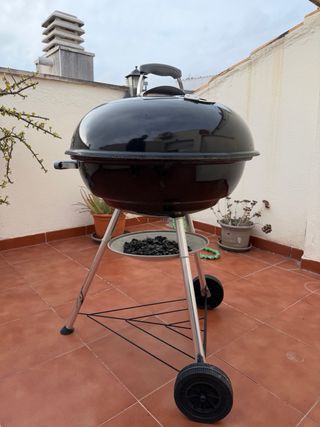 Barbacoa de carbón con un diseño clásico y funcional. - Tapa con asa y ventilación. - Patas con ruedas para fácil movilidad. - Parrilla inferior para accesorios.