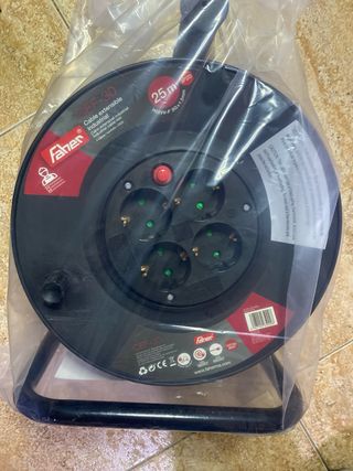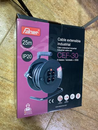 Cable enrrollable, extensible luz, marca Faher mod. CEF-30. Hasta 25 metros longitud. Nuevo