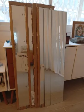 Conjunto de ocho espejos de IKEA, modelo FREBRO, con medidas de 20x120 cm. 4 euros por cada uno - Diseño moderno y minimalista. - Ideal para baños o recibidores.