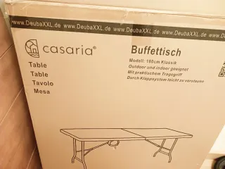 Mesa plegable de la marca Casaria, modelo Buffettisch de 180cm. - Ideal para uso interior y exterior. - Con práctico asa de transporte. - Fácil de guardar gracias a su sistema plegable.