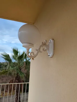Lámparas de pared para exteriores con un diseño clásico y elegante. - Globo de cristal. - Soporte de metal con detalles ornamentales. - Aplique exterior