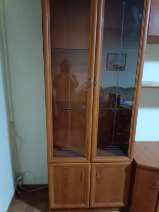 Mueble de comedor en perfecto estado. Medidas:2'60x2'20 - Estructura principal de madera. - Puertas y detalles de cristal. - Color marrón.