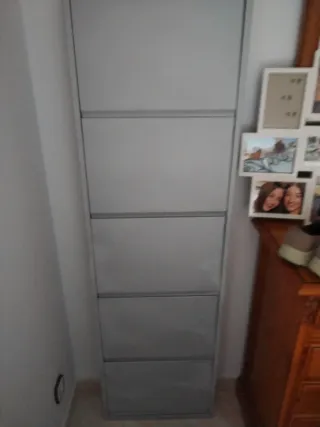 Zapatero de cinco cajones con un diseño moderno y funcional. - Estructura metálica. - Acabado en color gris.