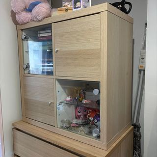 Mueble de almacenaje Kallax de Ikea, de 4 huecos con puertas - Estructura de madera clara. - 2puertas vitrina con estante de cristal - 2 Puertas de madera Excelente estado Su valor en ikea 120 € Oportundad a 75€ Abstenerse regateos agresivos Solo interesados