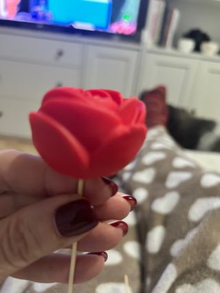 Preciosa flor decorativa hecha de cera. - Color rojo intenso. - Diseño delicado de rosa.