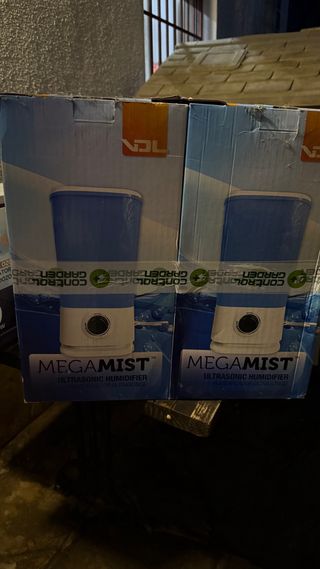 Se vende humidificador ultrasónico de la marca NDL, modelo Megamist. Su diseño combina los colores blanco y azul. - Tecnología ultrasónica para una difusión fina. - Control de intensidad. - Depósito de agua de gran capacidad. NUEVOS A ESTRENAR 35e la unidad 55e los 2