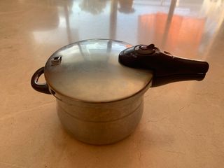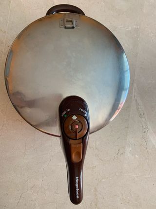 Olla a presión Magefesa con asa y tapa. - Cuerpo de metal. - Asa y tapa de plástico.