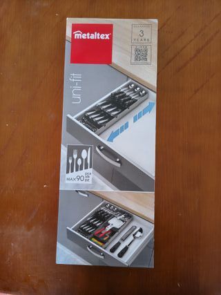 Organizador de cubiertos Metaltex, ideal para mantener tu cajón ordenado. - Diseño extensible. - Compartimentos para diferentes utensilios. - Material resistente y fácil de limpiar.