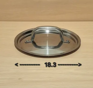 Tapa de acero inoxidable para cazuela, cazo, sarten, paella de 17 cm de obertura interior. No encaja en las medidas estandard de 16 cm o 18 cm. Es para el cazo de Ikea de 17 cm o sartenes. Bateria de cocina, utensilios, cocinar, recambio olla, cubierta, cazuela.