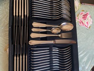Juego de cubiertos de acero inoxidable en perfecto estado. Ideales para uso diario. - Incluye 24 piezas. - Diseño elegante y atemporal. - Material resistente y duradero.