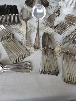 Cubertería completa antigua de metal plateado,