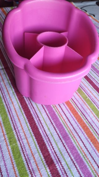 Bandeja porta cubiertos de color rosa. Creo que no se ha usado nunca.