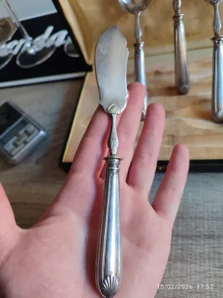 Elegante juego de cubiertos de plata, perfecto para ocasiones especiales o para añadir un toque de distinción a tu mesa. - Diseño clásico y atemporal. - Incluye cucharas y cuchillos.