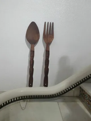Cubiertos madera decorativos años 70