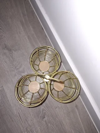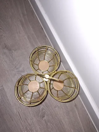 Organizador dorado para botellas o para cubiertos.