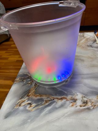 Cubitera con luces LED para animar tus reuniones. Ideal para mantener tus bebidas frías y dar un toque festivo. - Luces LED integradas. - Diseño moderno y llamativo.