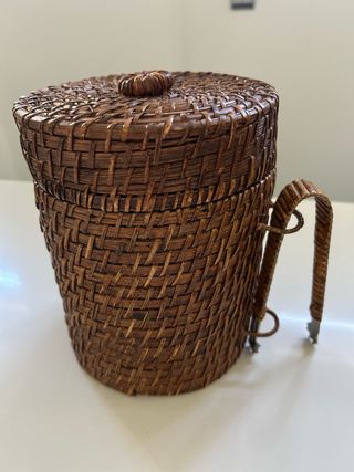 Cubitera de ratán con pinza metálica. - Diseño tejido a mano. - Incluye pinza para hielo.