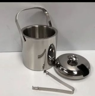 Cubitera de acero inoxidable con asa y tapa y pinzas - Material: Metal, acero inoxidable - Color: Plateado - Medidas: 16x16x19 cm - Peso bruto: 0.85 kg Completamente nueva a estrenar, alta calidad