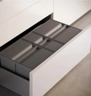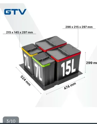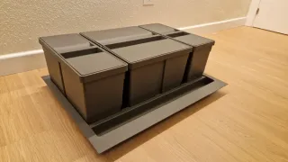 Cubos nuevos, solo la tapa superior está rota por la logística. EMUCA - Cubos de Basura bajo Fregadero con fijación Inferior para Cocina, 2 contenedores de Reciclaje extraíbles, Capacidad Total 40L (2 x 20 L), Acero y plástico, Gris Antracita. Marca EMUCA Capacidad 40 Litros Color Gris Antracita Mecanismo de apertura Extraíble MaterialAcero y plástico Usos recomendados para el producto Cocina Contenedor de residuos de fijación inferior y extracción manual con capacidad total de hasta 40L. Para instalación en módulos con medidas interiores mínimas de: ancho 364mm, profundidad 500mm y altura 395mm.
