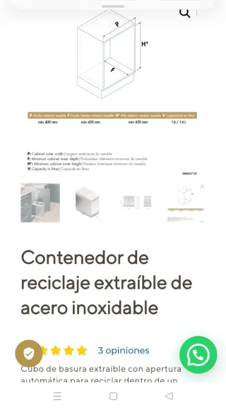 Contenedor de reciclaje extraíble de acero inoxidable. - Diseño moderno y funcional. - Ideal para cocinas. - Fácil de instalar.