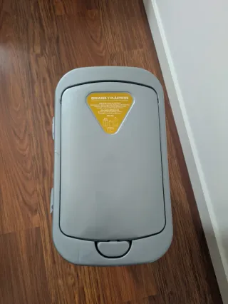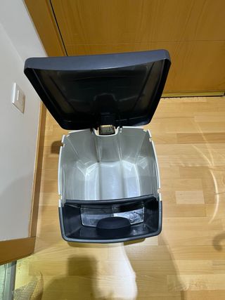 Cubo de basura con tapa abatible y pedal para facilitar su apertura. Ideal para la separación de residuos. Aubque se ha perdido el separador - Capacidad de 17L. - Diseño moderno y funcional. - Asa frontal para facilitar el transporte.