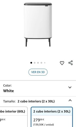 ❗tiene un pequeño desperfecto,mirar las fotos, solamente se ve con una luz específica, concentrada al desperfecto,sino no se ve nada❗ Brabantia Bo Hi Touch mecanismo de apertura con un toque, Cubo de basura con patas 2 x 30L, color blanco Marca Brabantia Capacidad 16 Galones Color White Mecanismo de apertura Extraíble Material Plástico, Acero inoxidable Usos recomendados para el producto Cocina