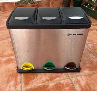 Cubo de basura para reciclaje, lo compre y aún viniendo con un bollo no me lo descambian, en Amazon está a 70€