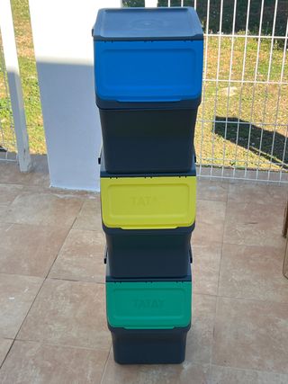 Contenedor con 3 compartimentos, perfecto para reciclar. Usado poco menos de 1 año. Precio original 93€.