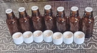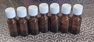 10 frascos de cristal color topacio de 20ml (en las fotos salen 7 pero son 10) Tienen cuenta gotas de plástico (8 gotas=1ml) que se pueden quitar y tapa también de plástico con rosca de seguridad. Usados pero desinfectados con máquina de ultrasonidos. Son de uso farmacéutico, perfectos para tinturas, aceites esenciales, alquimia.... Hago envíos
