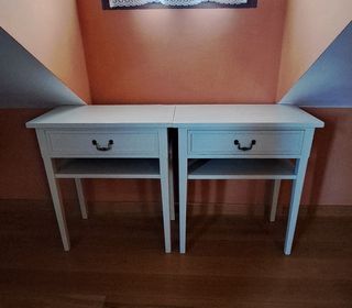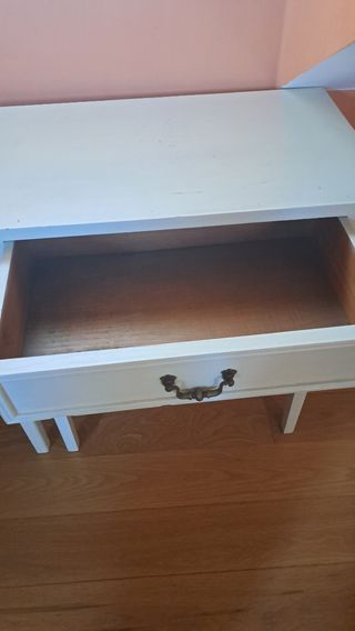 mesillas de castaño. con una balda y un cajón . una de ellas tiene un defecto que le aporta carácter y solera. Por el resto están muy bien conservadas. tiradores perfectos. se puede entregar en mano dependiendo de la zona