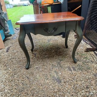 vendo mesa de madera, es ideal como mesa auxiliar o para cualquier sitio donde apetezca tenerla. yo tenía pensado lijar la parte de arriba y volver a barnizarla, pintarla para que quedara impoluta ...pero si no se le quiere hacer nada se puede perfectamente usar. Es madera de calidad. no pesa demasiado. no se envía. solo recoger en Cudillero
