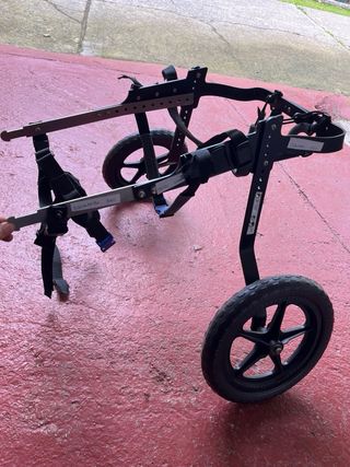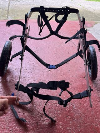 Vendo andador para perro tamaño mediano, fue comprado para tamaño labrador. Regulabre en altura, largura y abchula mediante tornillo, y ajustable a pecho y barriga mediante cintas. Posee reposapiernas trasero. Está en perfecto estado. Lo compré seminuevo en Wallapop y lo vendo tal cual, mi perro desgraciadamente no lo pudo llegar a utilizar. Exactamente por el precio al que lo compré. El único signo de desgaste que posee es el deshilache de algunas de las cinchas.