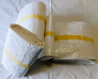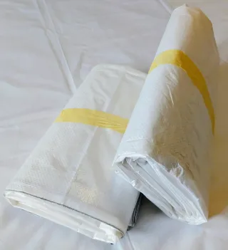 Juego de lonas (4 unidades) reforzadas e impermeables. Lonas multiusos con ojales metálicos. Fabricadas en España, en polietileno de alta densidad, con gran resistencia, de valor 140 gr/m, color blanco. Estado prácticamente nuevo, al haber sido utilizadas en interior. Se incluyen las siguientes medidas: - Lona de 2x3 metros. Peso: 950 gr - Lona de 2x3 metros. Peso: 950 gr - Lona de 3x4 metros. Peso: 1900 gr - Lona de 3x5 metros. Peso: 2400 gr