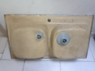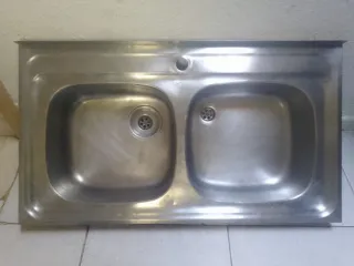 Fregadero de cocina doble seno -Medidas 90×50. - Fabricado en metal resistente. No envío. -recogida en cuenca.