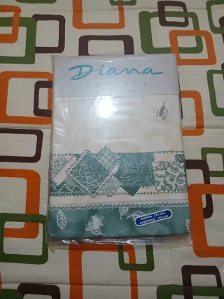 Juego de sábanas de matrimonio de la marca Diana. - Diseño con motivos florales y cuadrados. - Sábana bajera ajustable de 210 cm x 135 cm.