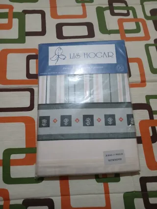 Juego de sábanas para cama de matrimonio de la marca Lis Hogar. Incluye 3 piezas. - Diseño a rayas y con motivos florales. - Tejido de tela.