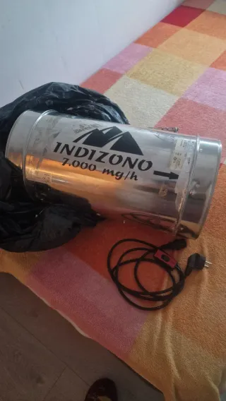 Generador de ozono Ozotres, modelo Clase 6. Diseñado para la purificación del aire. - Unidad principal de color negro con detalles plateados. - Incluye control de encendido y cable de alimentación.
