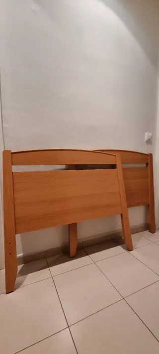Se venden dos cabeceros de madera con un acabado roble. Son ideales para darle un toque cálido a tu dormitorio. - Diseño elegante y atemporal. - Cada cabecero es para cama de 90 ancho de 97 el cabecero. - Perfectos para camas individuales. - Fácil de instalar. - Precio: 20€ cada uno. Se puede vender por separado y con la mesita que también hay en mi perfil. Recogida en Cunit.