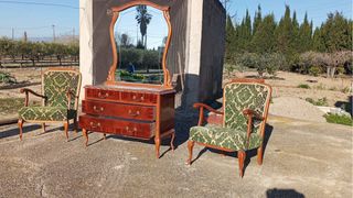 Conjunto Mueble y 2 Butacas Madera y Tela