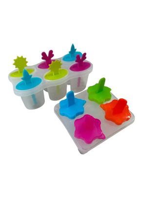 Set de moldes para hacer polos caseros con diseños originales. - Diseños variados en los moldes. - Mangos de colores llamativos.