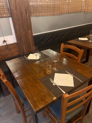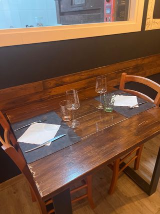 Conjunto de mesas para restaurante con una combinación de materiales. - Estructura de hierro. - Tablero de madera. Hechas artesanalmente 25 sillas 9 mesas