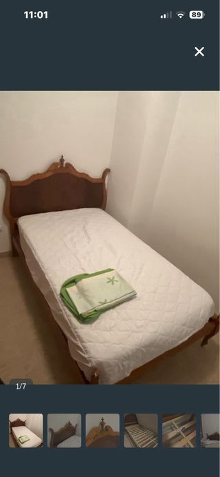 Cama clásica de madera con colchón y somier. Cama