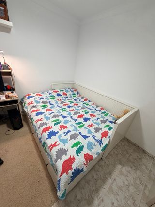 Cama nido en perfecto estado, nueva a estrenar con sus colchones incluidos. Ideal para habitaciones infantiles o de invitados. - Estructura diván de madera. - Acabado en blanco. - Colchones de 190x90 y superior de 200x90