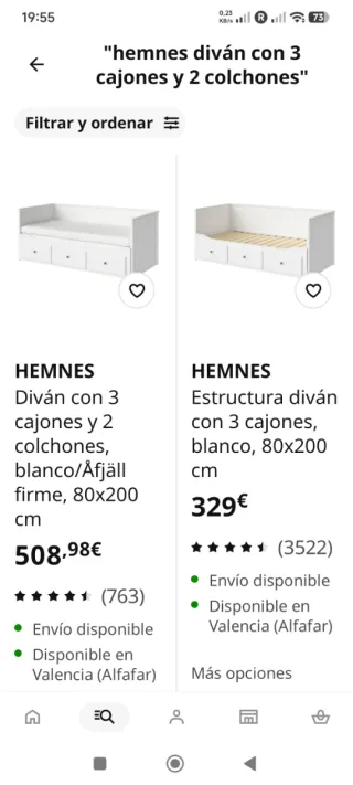• De media, comprar Divan Hemnes en Wallapop es un 44% más barato que comprar este tipo de producto nuevo