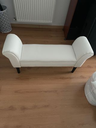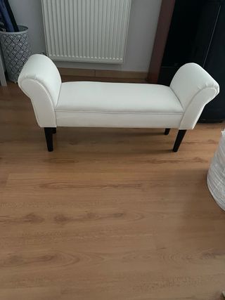 Elegante diván en color blanco con tela de lino 90cm largo 30cm ancho 35cm alto 50 cm alto desde el brazo - Diseño moderno - Tapicería lisa y confortable. - Ideal para añadir un toque de estilo a cualquier habitación.